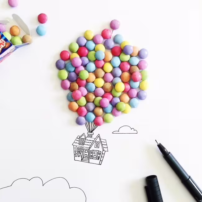 Et nous qui croyions que Mammouth était la seule et l’unique!^^ et j’ai lu que c’était chaud niveau temps pour les DIY mais je pense que ton idée avec la maison de Là haut est à creuser! pourquoi pas coller les smarties (trouver une solution pour qu’ils ne fondent pas haha^^) et les mettre dans un joli cadre.